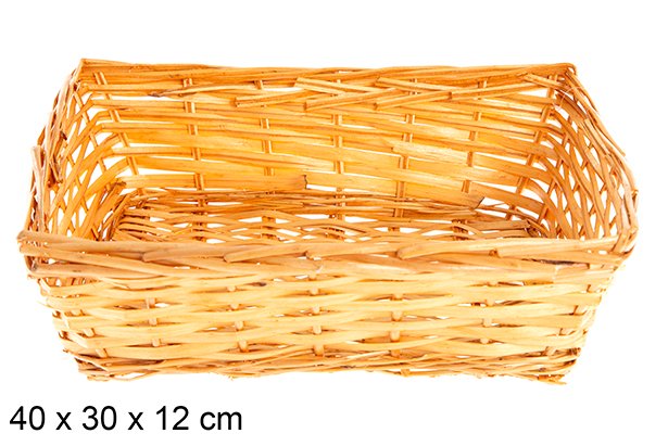 Cestas Mimbre Rectangular Miel 40x30x12cm. Artículo de menaje para mesa y hogar: ideal para servir, presentar y disfrutar de bebidas o comida con comodidad. Material resistente y fácil de limpiar. Medidas aproximadas: 30 x 12 cm.