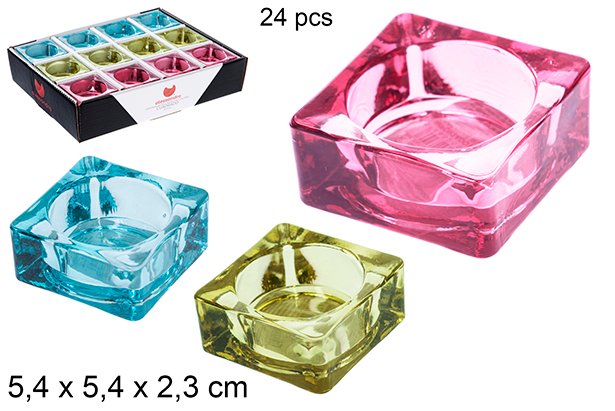 Portavelas Cristal Cuadrado Color Surtido 5.4x5.4x2.3cmPortavelas Cristal Cuadrado Color Surtido 5.4×5.4×2.3cm