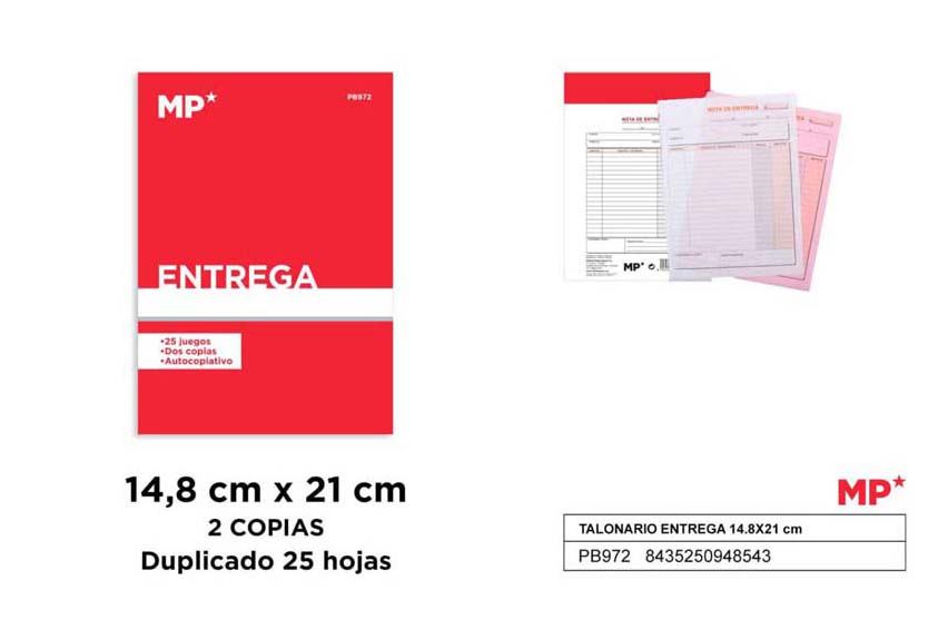 Talonario entrega 2 copias 15x21cm cantidad